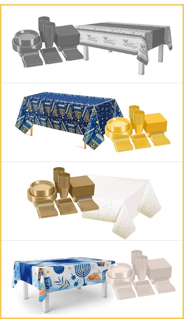 Choose one of these fun chanukah themed tablecloths, and match it with a coordinating dinnerware set!